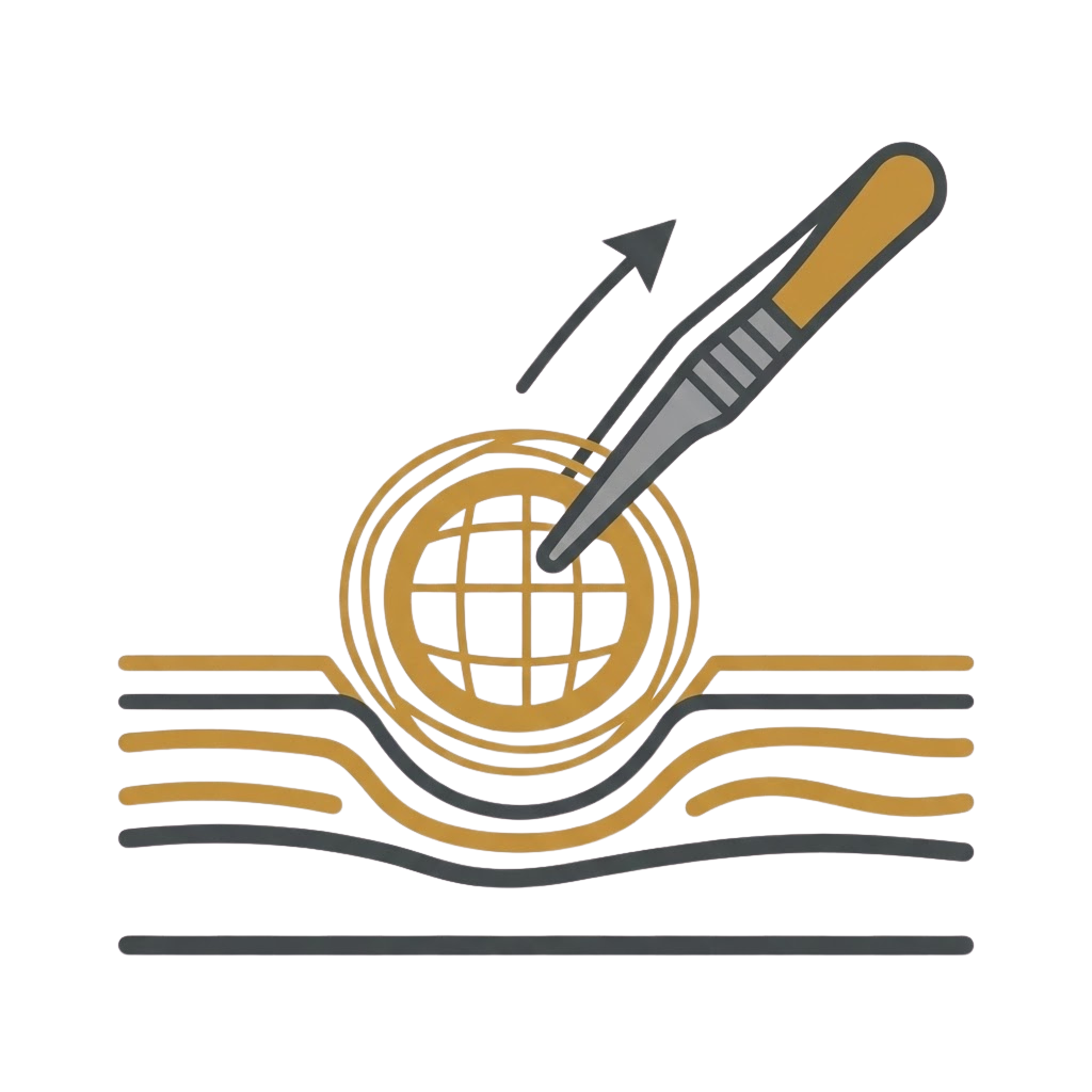 フィラーのしこりは被膜形成や肉芽腫によって注入から数年後に出現することがあります。この段階でなぜ溶解剤が効かないのか、超音波ガイド下ピンホール摘出がいかに確実な解決策となるのかを解説します。
