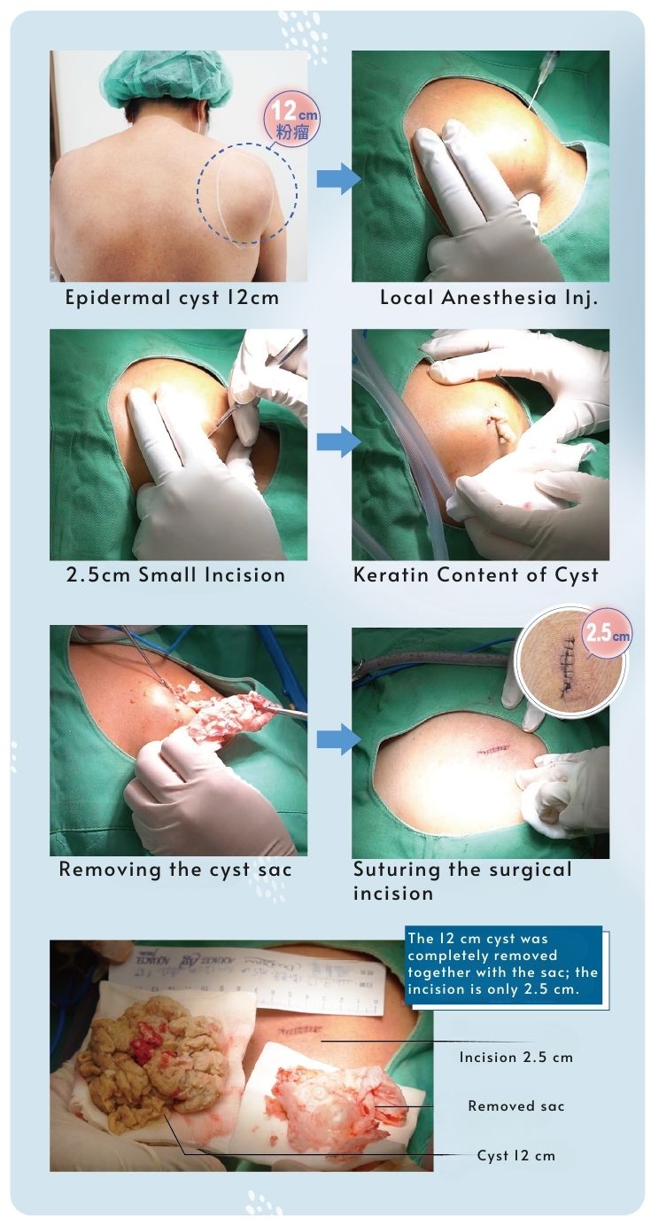The only cause of cyst recurrence is "residual capsule wall." Many patients have had cysts squeezed or drained, but since the capsule wall remains, they keep coming back. Dr. Liu insists on using special dissection techniques to completely remove the capsule through small incisions, solving the problem at its root. Even for difficult cases with previous inflammation and adhesion, we patiently handle them.